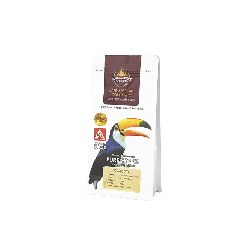 سطح الكيس غير لامع، مع شعار العلامة التجارية ومعلومات مسحوق القهوة مطبوعة عليه بشكل واضح للغاية، وليس من السهل فركه.