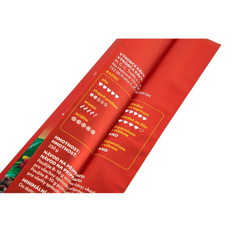 تتميز مادة كيس القهوة الجانبية نفسها بأداء جيد مقاوم للرطوبة، والذي يمكن أن يمنع غزو الرطوبة الخارجية، وتجنب رطوبة حبوب القهوة وتكتلها، وضمان المذاق المستقر أثناء التخمير. هيكل الحافة القابل للطي يجعل جسم الحقيبة يتحمل القوة بشكل متساوٍ، بعد ملئه بحبوب القهوة، يكون أقل عرضة للتشوه أو الكسر بسبب الجاذبية، وهو مناسب للنقل والتخزين.