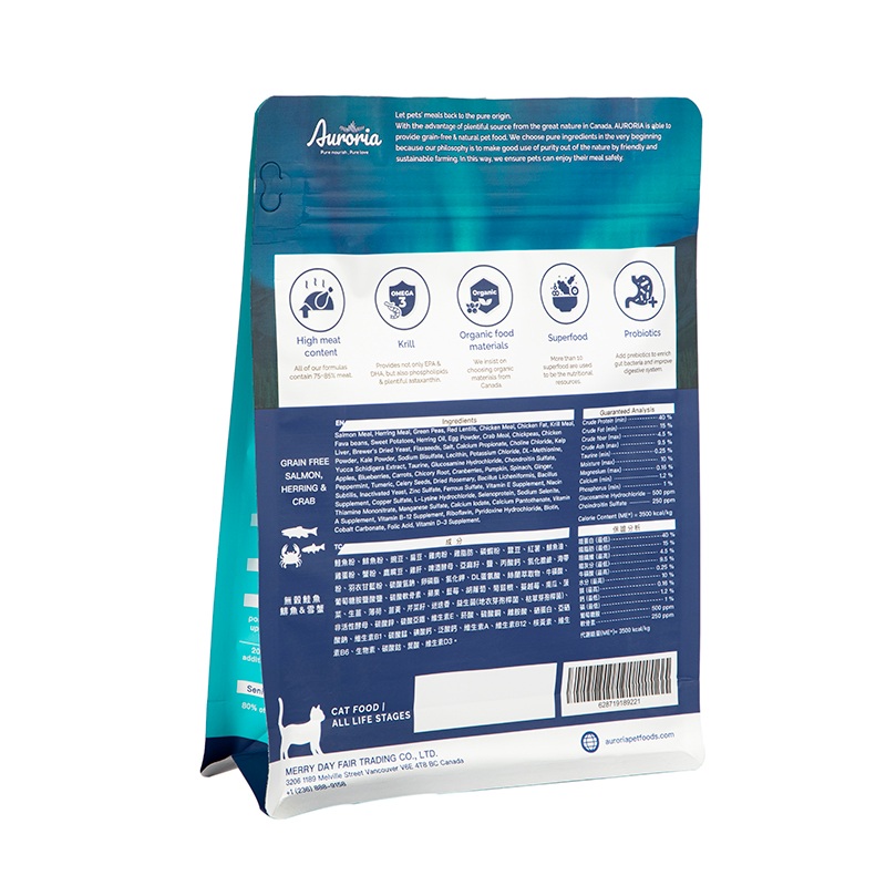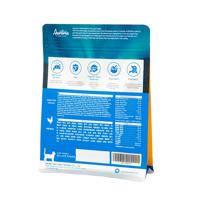 سطح حقيبة طعام الكلاب المزودة بسحاب مصنوع من مادة سميكة غير لامعة، والمعلومات مثل المذاق ومدة صلاحية طعام الحيوانات الأليفة المطبوعة عليها واضحة بشكل خاص ولا يمكن خدشها بسهولة بواسطة المخالب.
