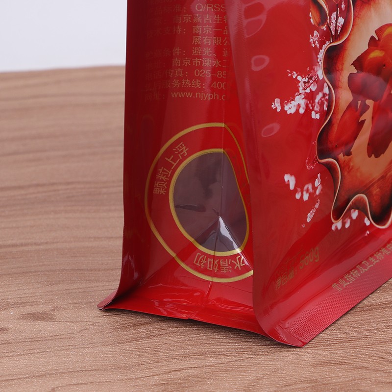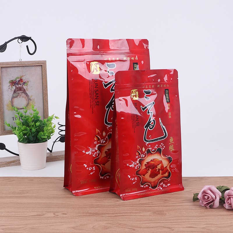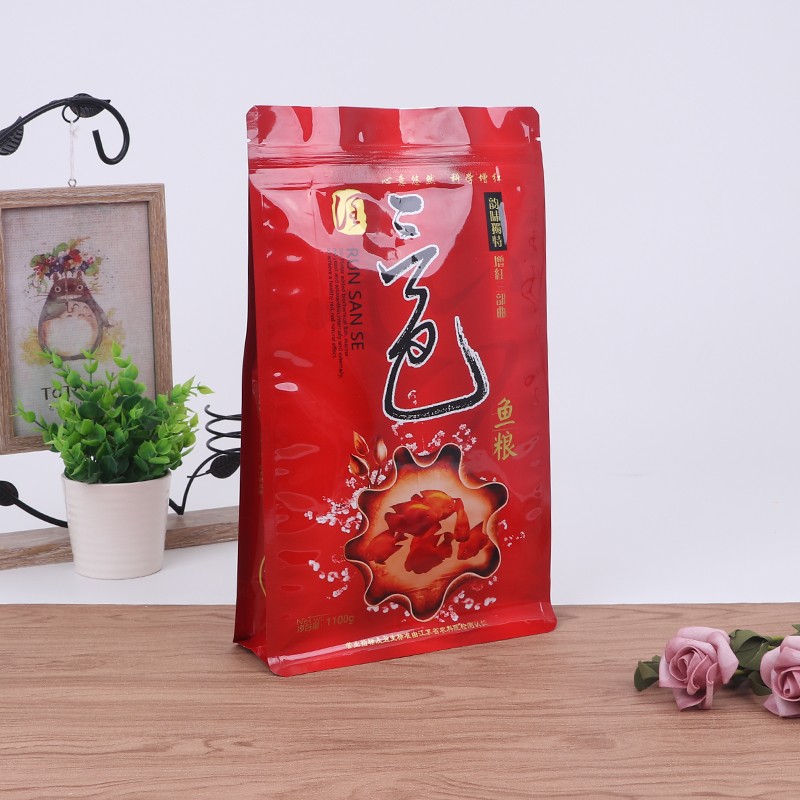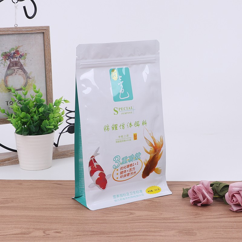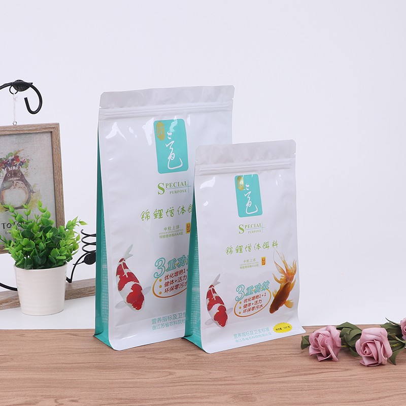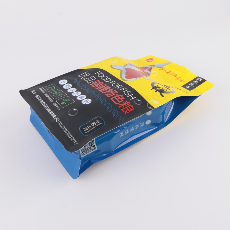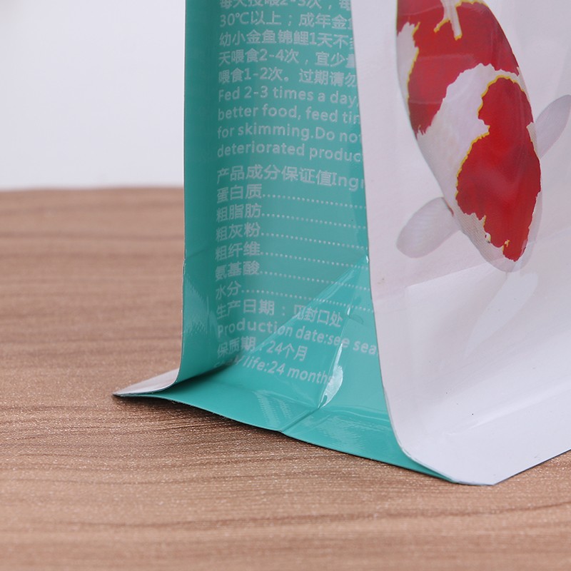 إن إغلاق الحافة لحقيبة طعام الأسماك المسطحة محكم بشكل خاص، وجزيئات طعام الأسماك صغيرة. تميل الأكياس العادية إلى تسرب البودرة من الزوايا. الجوانب والجزء السفلي من هذه الحقيبة المسطحة معززة بإغلاق الحواف، حتى إذا كان مسحوق طعام السمك ناعمًا جدًا، فلن يتسرب، فهو أكثر ملاءمة للتعبئة.