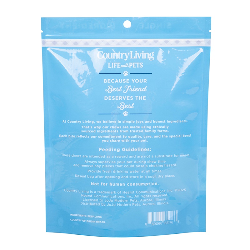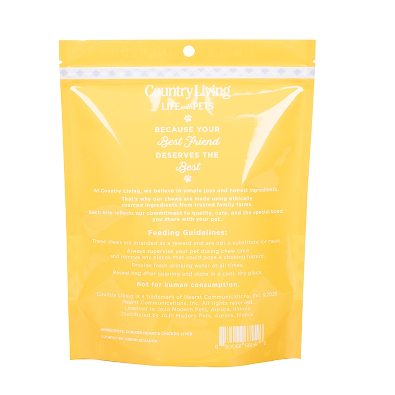 تتميز منتجاتنا بملمس ممتاز، فهي مصنوعة من مواد مركبة لامعة عالية الجودة، مع عدم وجود شوائب نسيجية على السطح، وتتميز الألوان المطبوعة بدقة عالية، ويتم تقديم أنماط العلامة التجارية ومعلومات المنتج بشكل واضح ومشرق، ولها إحساس راقي ويمكنها جذب انتباه المستهلكين بسرعة. تصميم الهيكل العمودي علمي، مع تأثير جيد في تشكيل القاع. بعد ملئها بطعام الكلاب، يمكنها الوقوف بثبات دون الاعتماد على أشياء أخرى، وهذا لا يوفر مساحة التخزين فحسب، بل يجعل عرض الرف أكثر تنظيمًا وأنيقًا، مما يسهل على المستهلكين فحص المنتجات بصريًا.