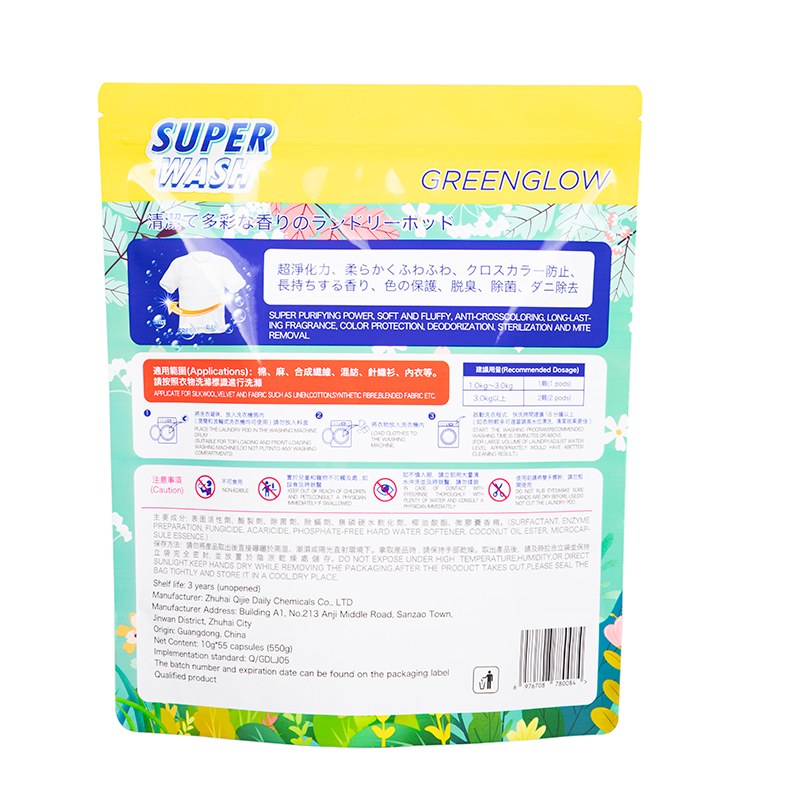 سحاب كيس منظف الغسيل المزود بسحاب الذي تم إنتاجه من قبل الشركة المصنعة Wanle هو النمط الذي يناسب جسم الكيس تمامًا، فهو ناعم بشكل خاص عند إغلاقه، دون أي إحساس بالتشويش، ويمكن أن ينزلق من طرف إلى آخر بسحب لطيف. تم توسيع فتحة الكيس، مما يجعل من السهل بشكل خاص صب المنظف ومنعه من التدفق على طول فتحة الكيس.