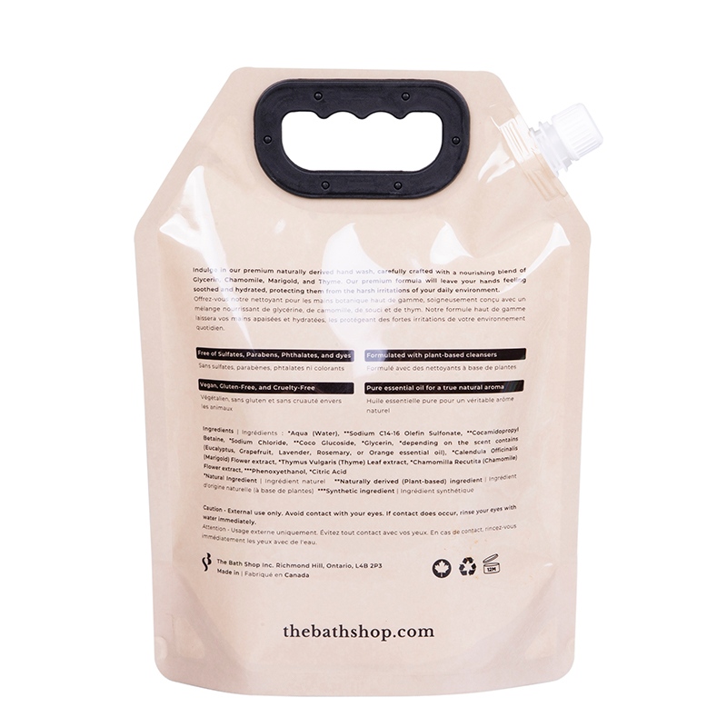 الفوهة الموجودة أعلى كيس فوهة منظفات الغسيل التي صممها مصنع Wanle هي تصميم محسن، ليست هناك حاجة لفك غطاء الزجاجة بشكل منفصل. فقط اضغط عليه بلطف ويمكن أن يخرج السائل بسلاسة. عندما تطلق يدك بعد الاستخدام، ستغلق تلقائيًا، ومن المريح جدًا وضعها في الحمام أو غرفة الغسيل.